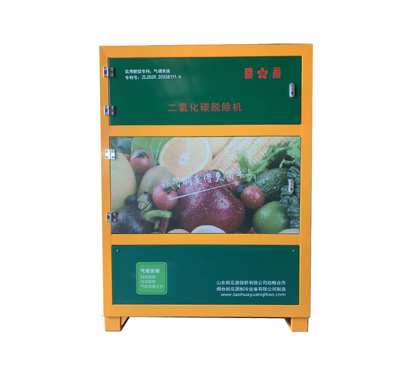 在果蔬儲藏過程中,由于果蔬進(jìn)行呼吸作用,會使儲藏環(huán)境中的二氧化碳含量升高,適量的二氧化碳對果蔬有保護(hù)作用,但若二氧化碳濃度過高時,會導(dǎo)致果蔬二氧化碳中毒,會產(chǎn)生一系列的不良癥狀,導(dǎo)致果蔬變質(zhì)腐爛,造成損失。我公司的二氧化碳脫除機(jī)能自動快速的將二氧化碳濃度降至參數(shù)要求的合理范圍之內(nèi)。桃花源采用氣調(diào)設(shè)備專用活性炭,二氧化碳吸附效率高,再生快,使用壽命長的特點。